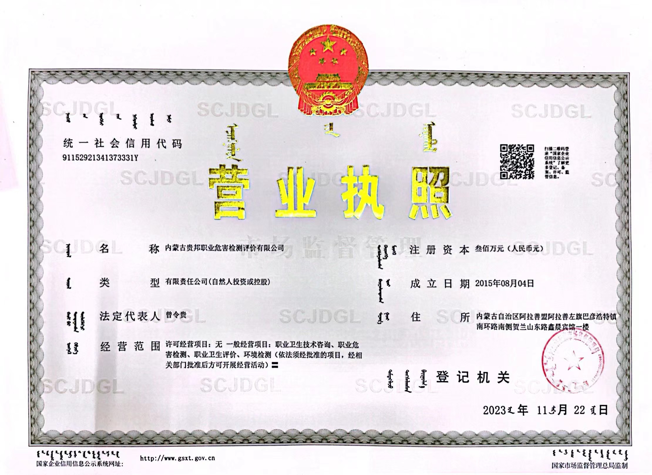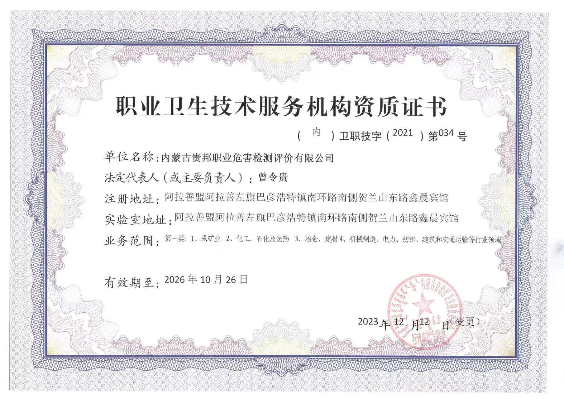 內(nèi)蒙古貴邦職業(yè)危害檢測評價(jià)有限公司(www.cjttzx.com)版權(quán)所有 地址:阿拉善盟阿拉善左旗賀蘭山東路加氣站南側(cè)鑫晨賓館一樓 24小時(shí)熱線:18947252199 蒙ICP備:蒙ICP備21006705號-1 公安備案號:50011802010212
